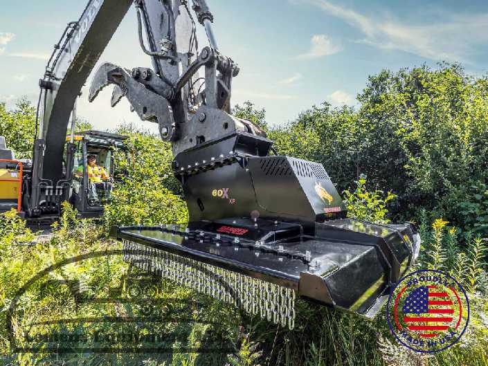 Up your brush-cutting game with the next generation of rotary cutters for mini and mid-size excavators/backhoes. We’ve upgraded our heavy-duty cutters with a powerful piston motor for higher torque and included a hydraulic relief block with an integrated case drain. The now removable chain curtains accommodate different cutting styles, and the vented, hinged hood improves drive-train protection. Big in power, yet still the right size to squeeze in tight spaces. A dependable, versatile cutter you’ll use for virtually everything.
