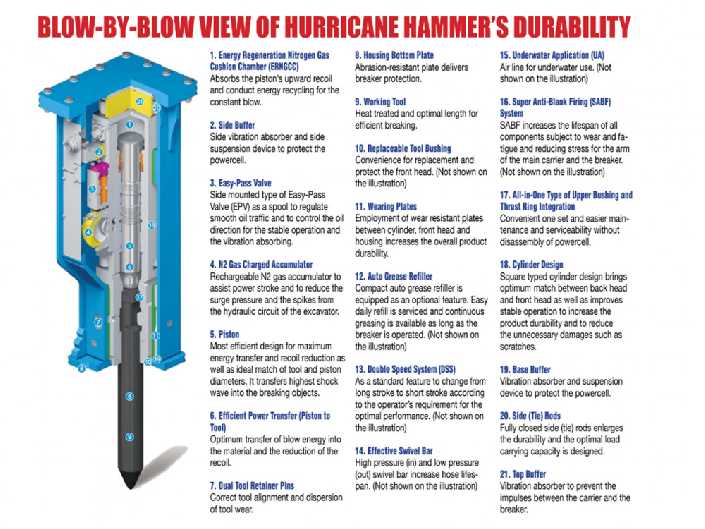 Hurricane Hydraulic Hammers break rock and concrete in the toughest demolition, construction, quarrying and tunneling jobs. Hammers are available in 10 sizes from 350 to 12,000 foot-pound working class. The Hurricane Hammer is easily connected to variety of carriers – skid steers, mini-exs and large excavators. The Hurricane Hammer is an ideal combination of design simplicity and rigorous durability that maximizes efficiency and operational value for your business.
