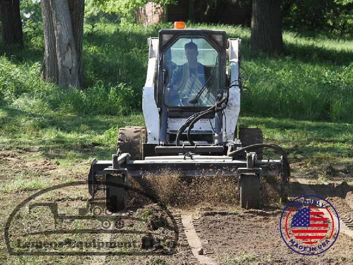 This attachment has all of the benefits of our rigid soil conditioner, plus a unique floating connection option that provides automatic leveling as the unit follows the contour of the ground. Easily rake stones and debris to either side or straight ahead for easy pickup. Achieve greater ground speed with the large-diameter rotor and aggressive teeth that pulverize the soil on the go. The counter-rotating rotor action moves soil ahead while tilling. This allows you to fill in low spots and cut down high spots in one pass. Rake and till as deep as 4" to create the perfect seedbed. This unit separates rocks, tears up sod, and eliminates dirt clods for a truly professional finish.