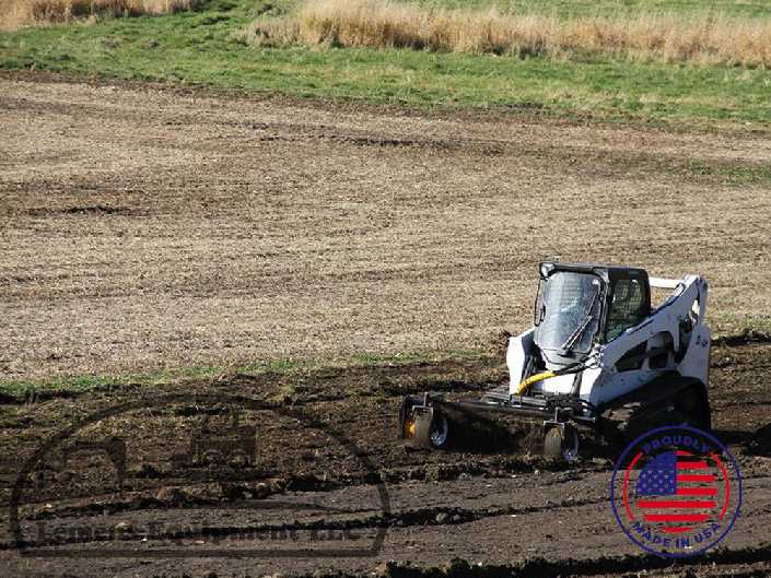 This attachment has all of the benefits of our rigid soil conditioner, plus a unique floating connection option that provides automatic leveling as the unit follows the contour of the ground. Easily rake stones and debris to either side or straight ahead for easy pickup. Achieve greater ground speed with the large-diameter rotor and aggressive teeth that pulverize the soil on the go. The counter-rotating rotor action moves soil ahead while tilling. This allows you to fill in low spots and cut down high spots in one pass. Rake and till as deep as 4" to create the perfect seedbed. This unit separates rocks, tears up sod, and eliminates dirt clods for a truly professional finish.