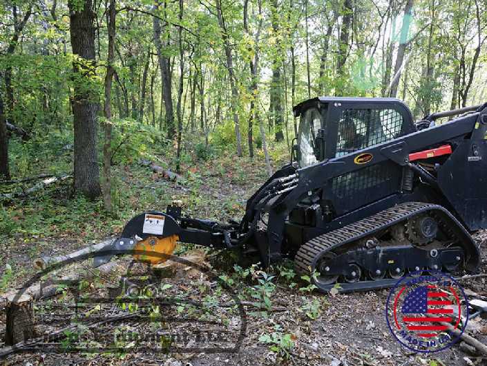 The Quick Stump-Away-Industrial Stump Grinder is the choice for arborists, large contractors, landscapers and maintenance departments. Mounted on a skid steer, these units are easy to maneuver into tight areas that would be impossible to reach with other types of machines without creating unnecessary damage to property. It features the ideal combination of maneuverability, power, durability, and simplicity.