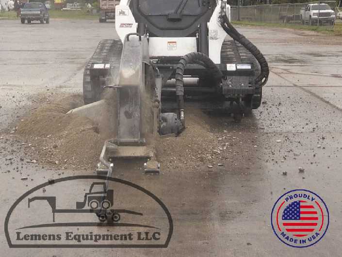 Cut through asphalt and concrete with greater efficiency with the Heavy-Duty Rock Saw. This powerhouse delivers up to 20 FPM cutting speeds. Hydraulic side-shift and depth control allows skid steer operators to shift it up to 24" for maneuvering close to buildings and other obstacles from the comfort of your seat. Cut up to 18" or 24" deep. Side cutting teeth, a side motor protection blade, and a floating spoil deflector come standard.