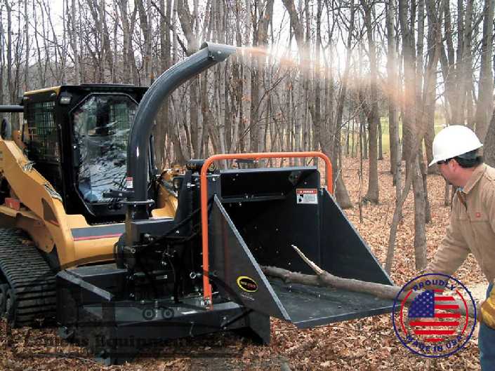 Turn your skid steer into a mobile work station. This attachment is ideal for commercial, residential, orchards, golf courses, etc., any place where you need to turn a pile of branches into a pile of chips. Easily placed into backyards and remote areas without creating damage to yards.