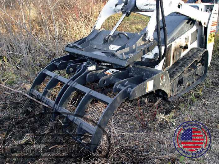 The most versatile tool in your attachment arsenal. The strength of the Mini Grapple Rake allows you to pick up a variety of debris, from logs and brush to rocks and concrete. The quality and strength of the high-strength steel used throughout gives you a grapple rake that will withstand the toughest demands. Its 36" opening and powerful jaws will close, clamp and hold virtually anything.