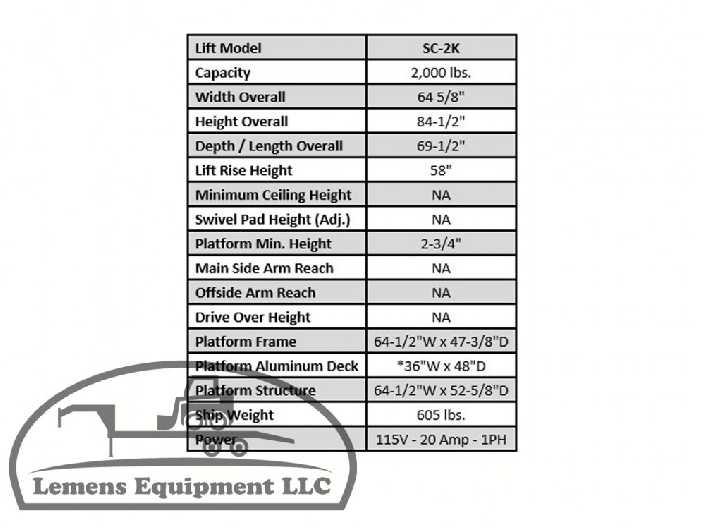 -All in stock lifts can be picked up here at Lemens Equipment LLC in Eldon MO. Please give us a day notice prior to coming so we can get it ready for you.