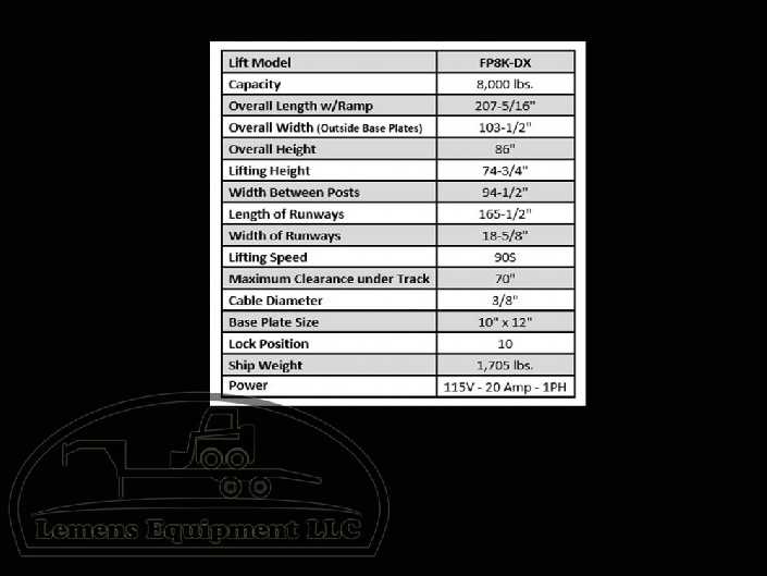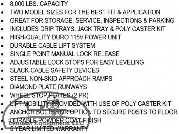 -All in stock lifts can be picked up here at Lemens Equipment LLC in Eldon MO. Please give us a day notice prior to coming so we can get it ready for you.