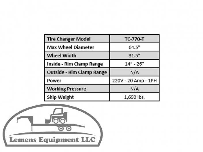 A great piece of equipment for a truck shop or farm. The TC-770T is capable of handling tires with tubeless rims or lock rings. Ideal for agricultural equipment, trucks, tractors and earth movers.