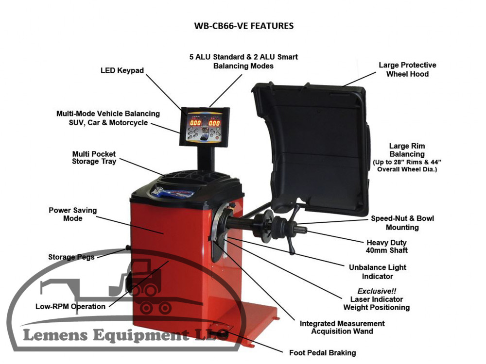 The CB66-VE Wheel Balancer is a highly accurate and reliable wheel balancing system designed to accommodate large rims up to 28" in diameter and overall wheel diameters up to 44". A 40mm balancing shaft provides incredible durability, while the exclusive laser and light feature illuminates the inside of the wheel at the unbalanced weight position, for convenient and precise wheel weight applications. The CB66-VE also comes standard with multi-mode balancing options, along with power saving mode, while allowing the user to choose between 5 standard and 2 ALU smart balancing configurations. A high performance balancer at an unbeatable value!