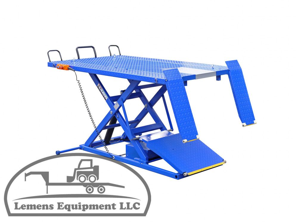 The A-2200IEH-XR is up to the challenge of lifting all ATV’s on the market today. In addition to our new and innovative retractable ramp system the A-2200IEH-XR has pivot approach ramps that fold out of the way as the lift raises and become wheels stops. Keeping the technician in mind these features limit injury, save time and space which makes your shop area more productive. Our single point hand held pendant fully controls the lift; lifting, lowering into locks and lowering without the use of hands or feet to disengage manual safety latches.