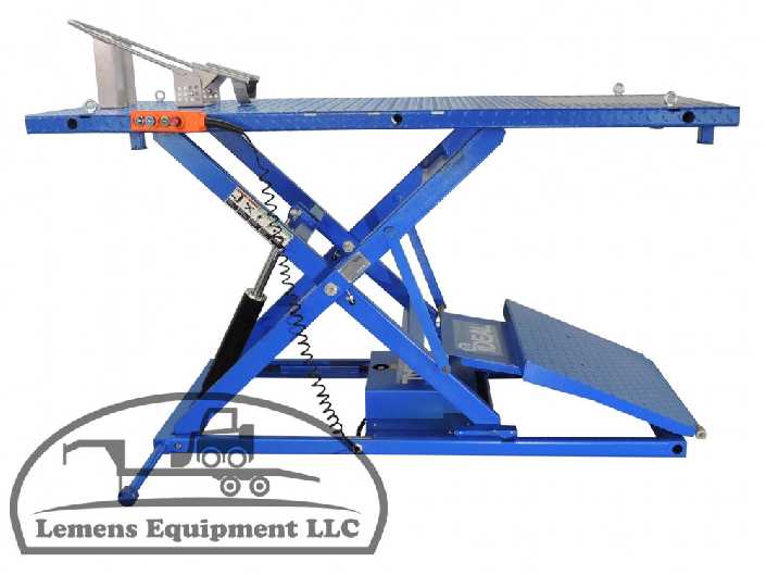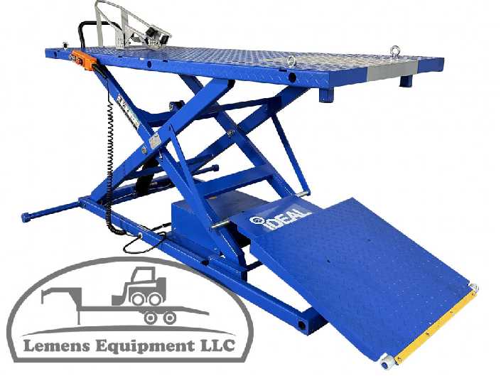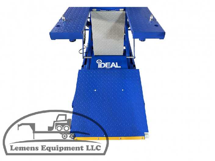 The M-2200IEH-XR Motorcycle lift features our innovative retractable approach ramp system which automatically retracts the approach ramp from the work space while the lift is rising. A spring loaded drop down panel for improved rear wheel service access is integrated into the table. The drop down panel swings out of the way and quickly clips back into place when not in use. We have maintained our hand held pendant for complete operation. No need to put hands or feet in harm’s way when disengaging safety latches.