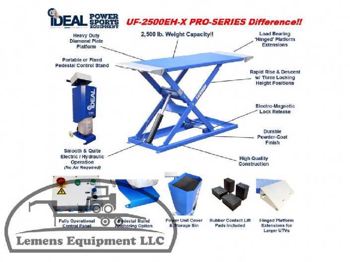 The UF-2500EH-X Pro-Series 'Frame Engaging' Utility & All-Terrain Vehicle Lift is able to service the largest UTVs with 2,500 lbs capacity!