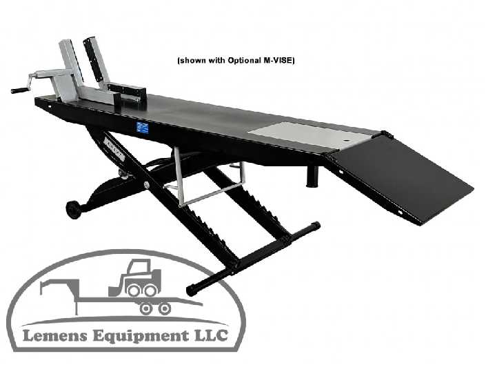 The M-1000C-BLK is the "Special Black Edition" of the air-powered motorcycle lift table, combining professional-grade 1,000 lb capacity with a sleek, corrosion-resistant black powder-coat finish. It is a versatile solution for both commercial shops and DIY garages, designed for servicing motorcycles, ATVs, snowmobiles, and jet skis.