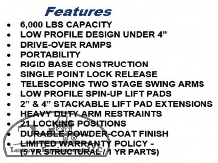 - Capacity: 6,000 lbs
