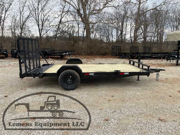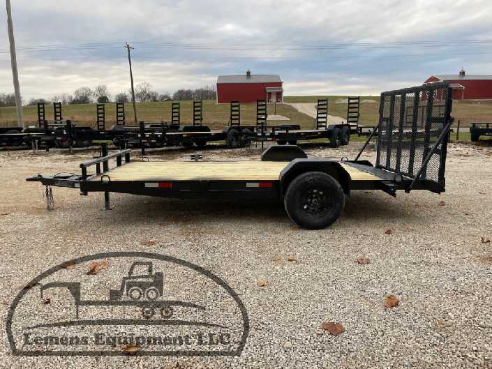 This is a single axle heavy duty bumper pull flatbed trailer in black color. It is 14ft long and 82 inches wide between the fenders, and has a spring assisted 4ft gate on the back. It would work good to haul a scissor lift, atv, four wheeler, utv, side by side, sxs, lawn mower, zero turn, motorcycle, dirt bike or trike. It is a good deal and the price is cheap. See more details below, thanks!