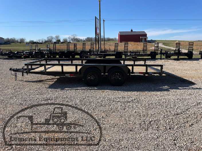 This is a tandem axle heavy duty bumper pull utility trailer with a brake in black color. It is 16ft long and 76 inches wide between the fenders, and has a spring assisted 4ft gate on the back. It would work good to haul a tractor, scissor lift, atv, four wheeler, utv, side by side, sxs, lawn mower, zero turn, motorcycle, dirt bike or trike. It is a good deal and the price is cheap. See more details below, thanks!