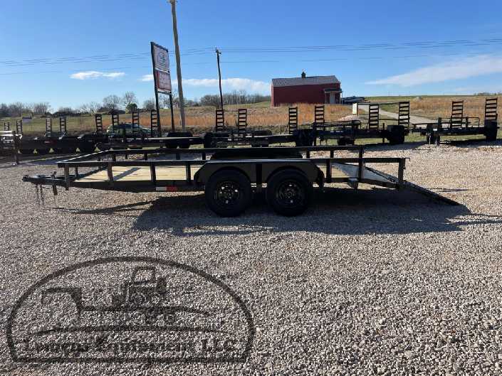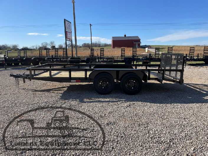 This is a tandem axle heavy duty bumper pull utility trailer in black color. It is 16ft long and 76 inches wide between the fenders, has a 2ft dovetail for easier loading, and has a spring assisted 3ft gate on the back. It would work good to haul a tractor, scissor lift, atv, four wheeler, utv, side by side, sxs, lawn mower, zero turn, motorcycle, dirt bike or trike. It is a good deal and the price is cheap. See more details below, thanks!