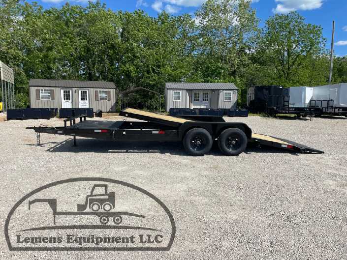 This is a tandem axle 10k bumper pull split tilt trailer in black color. It is 22ft long and it would work good to haul a car, truck, skid steer, track loader, mini ex, tractor, fork lift, and scissor lift. It is a good deal and the price is cheap. See more details below, thanks!