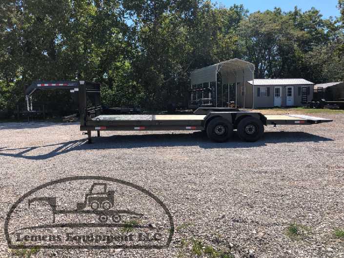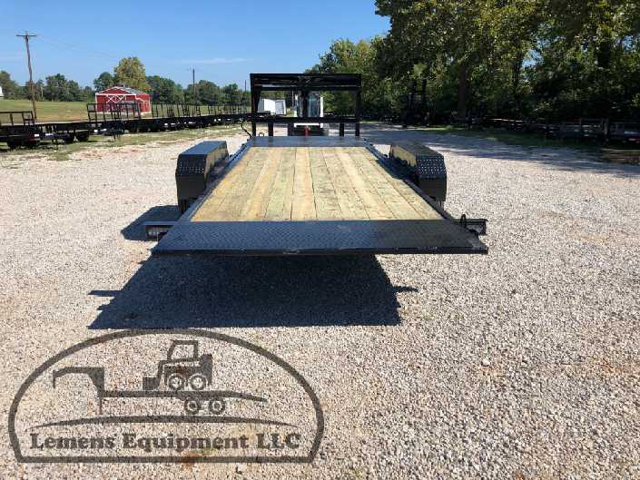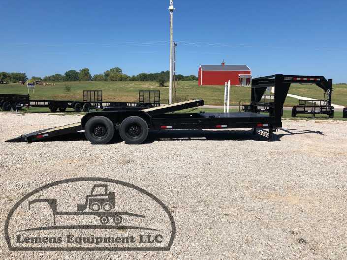 This is a tandem axle 16k heavy duty gooseneck split tilt trailer in black color. It is 24ft long and 84” extra wide between the fenders, and it would work good to haul a car, truck, skid steer, track loader, mini ex, tractor, fork lift, and scissor lift. It is a good deal and the price is cheap. See more details below, thanks!