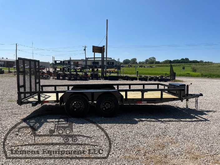 This is a tandem axle heavy duty bumper pull utility trailer with a brake in black color. It is 16ft long and 76 inches wide between the fenders, has a toolbox on the tongue, and has a spring assisted 4ft gate on the back. It would work good to haul a tractor, scissor lift, atv, four wheeler, utv, side by side, sxs, lawn mower, zero turn, motorcycle, dirt bike or trike. It is a good deal and the price is cheap. See more details below, thanks!
