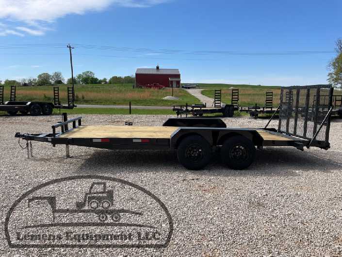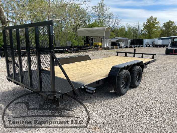This is a tandem axle 7k heavy duty bumper pull flatbed trailer in black color. It is 18ft long and 82 inches wide between the fenders, and has a spring assisted 4ft gate on the back. It would work good to haul a car, truck, skid steer, track loader, mini ex, tractor, fork lift, scissor lift, atv, four wheeler, utv, side by side, sxs, lawn mower, zero turn, motorcycle, dirt bike or trike. It is a good deal and the price is cheap. See more details below, thanks!
