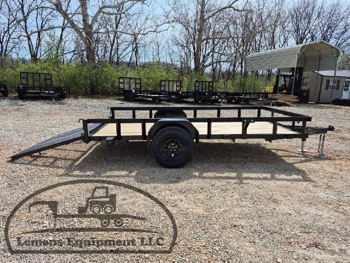 This is a single axle heavy duty bumper pull utility trailer in black color. It is 12ft long and 76 inches wide between the fenders, and has a spring assisted 4ft gate on the back. It would work good to haul a tractor, scissor lift, atv, four wheeler, utv, side by side, sxs, lawn mower, zero turn, motorcycle, dirt bike or trike. It is a good deal and the price is cheap. See more details below, thanks!