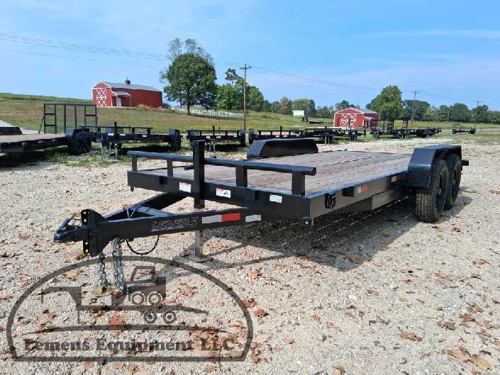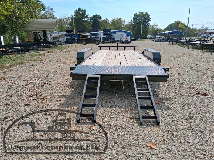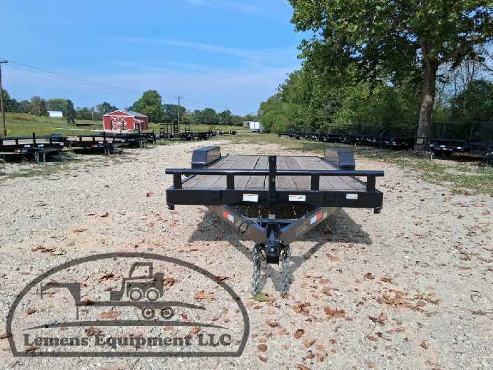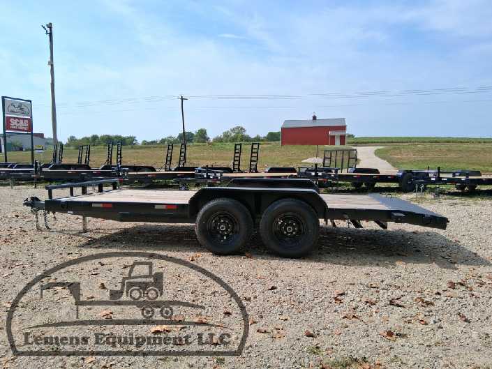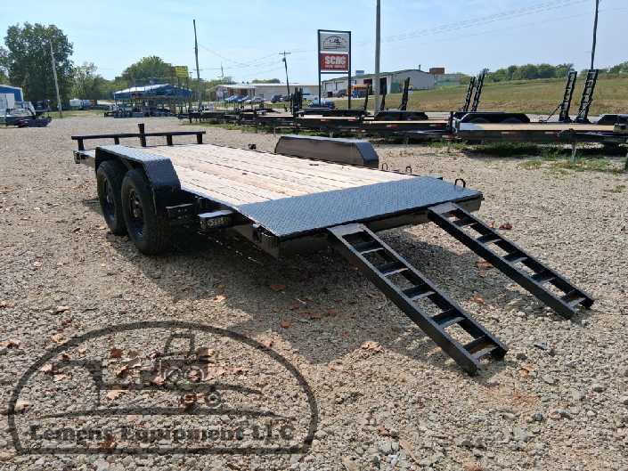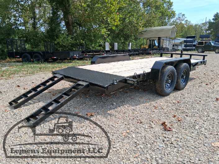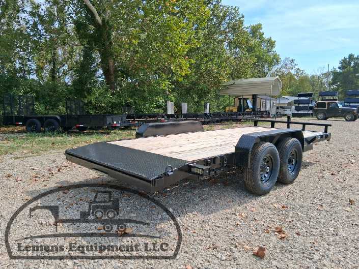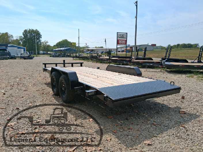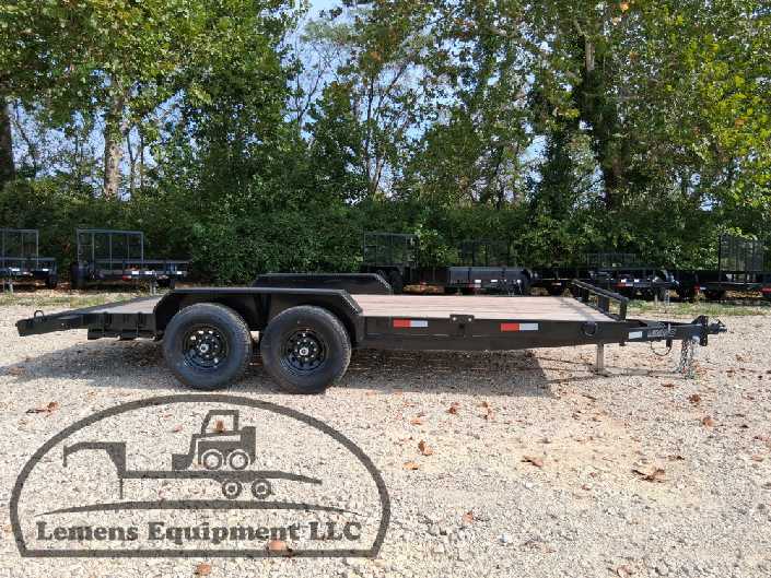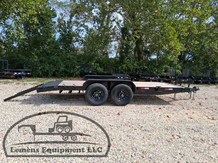 This is a tandem axle 12k heavy duty bumper pull flatbed trailer in black color. It is 18ft long and 82 inches wide between the fenders, and has slide-in ramps underneath. It would work good to haul a car, truck, skid steer, track loader, mini ex, tractor, or fork lift. It is a good deal and the price is cheap. See more details below, thanks!