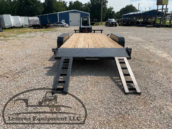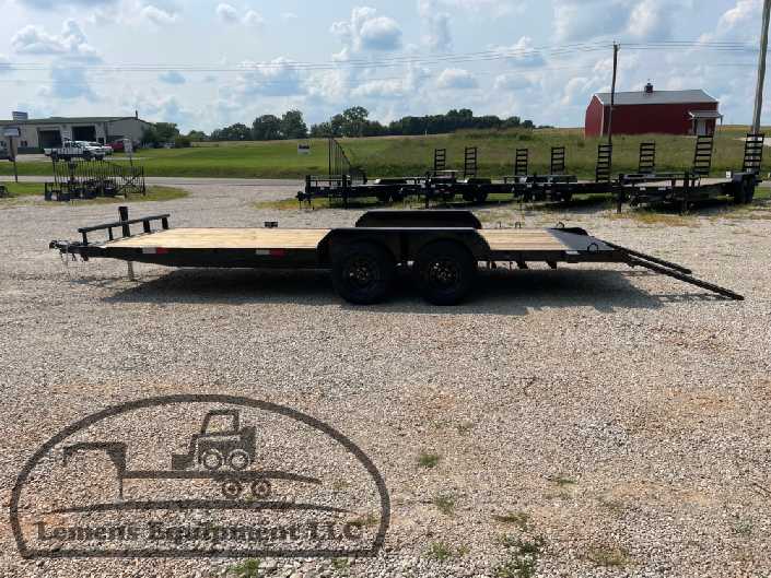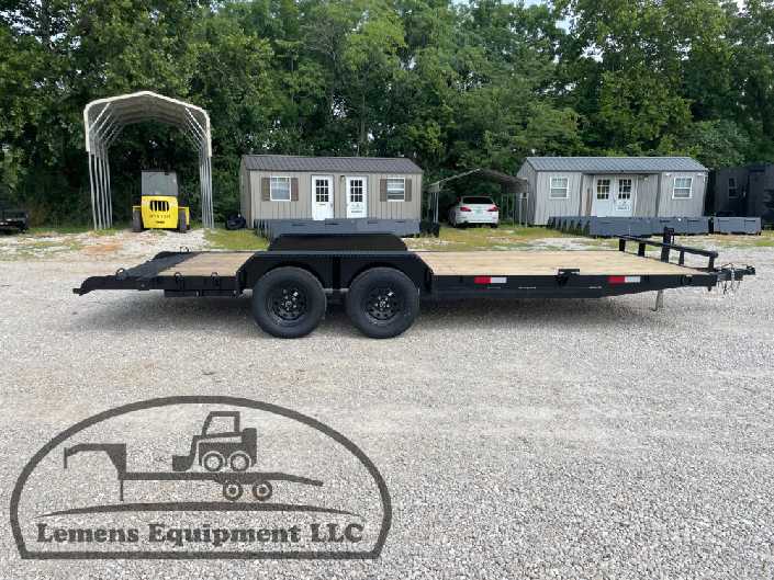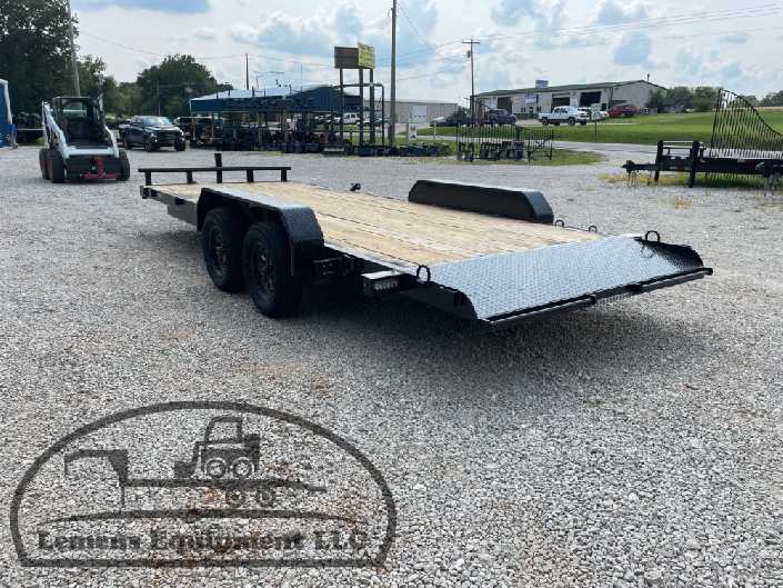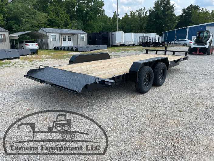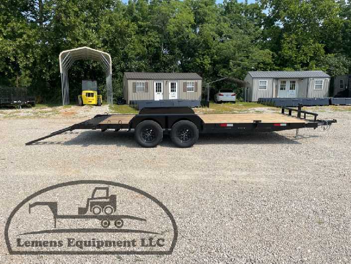 This is a tandem axle 7k heavy duty bumper pull flatbed trailer in black color. It is 20ft long and 82 inches wide between the fenders, and has slide-in ramps underneath. It would work good to haul a car, truck, skid steer, track loader, mini ex, tractor, or fork lift. It is a good deal and the price is cheap. See more details below, thanks!