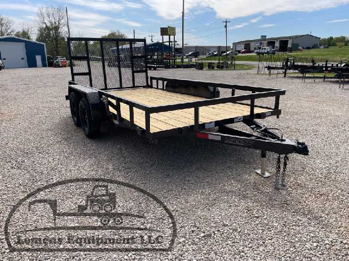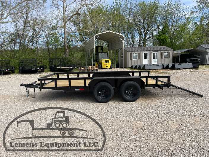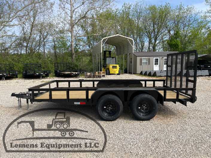 This is a tandem axle heavy duty bumper pull utility trailer with a brake in black color. It is 14ft long and 82 inches wide between the fenders, and has a spring assisted 4ft gate on the back. It would work good to haul a tractor, scissor lift, atv, four wheeler, utv, side by side, sxs, lawn mower, zero turn, motorcycle, dirt bike or trike. It is a good deal and the price is cheap. See more details below, thanks!
