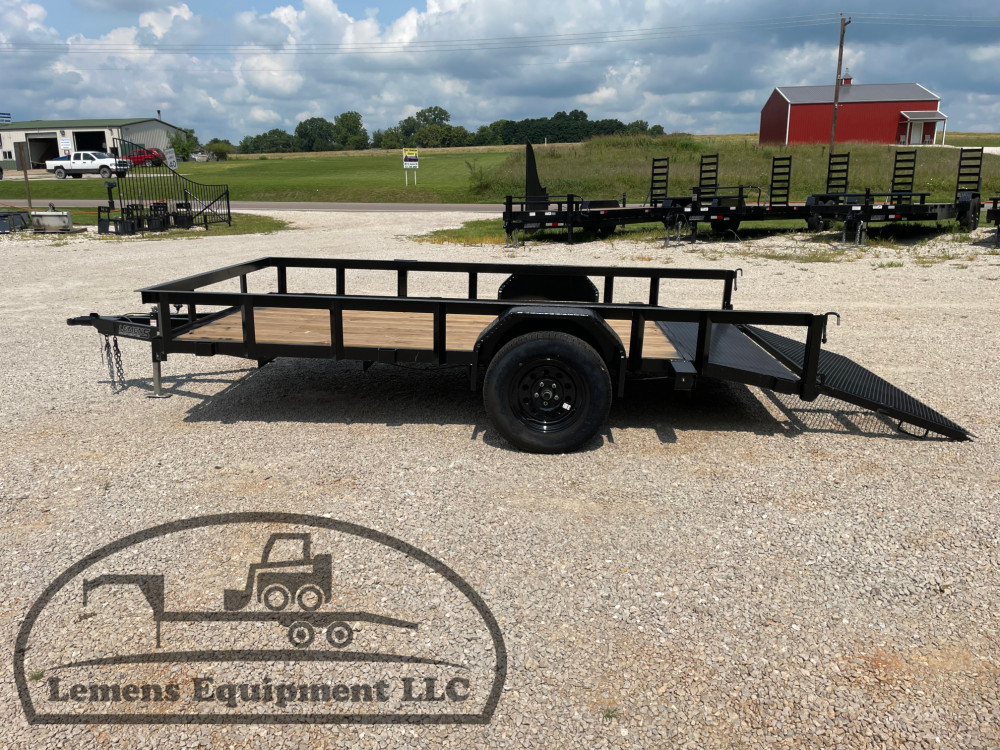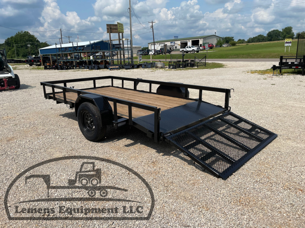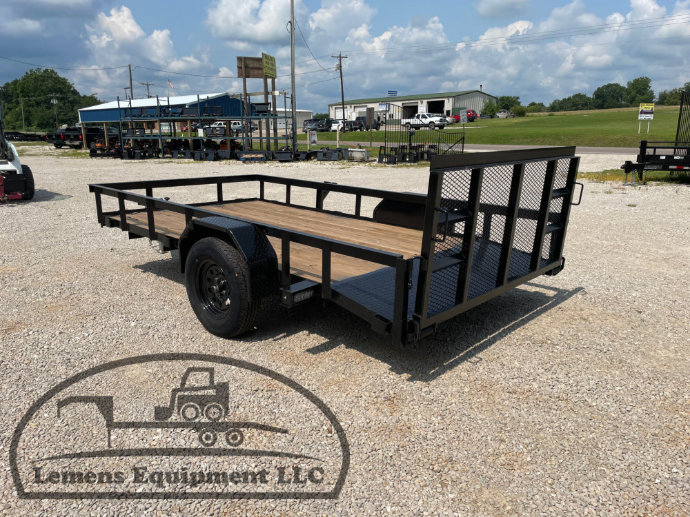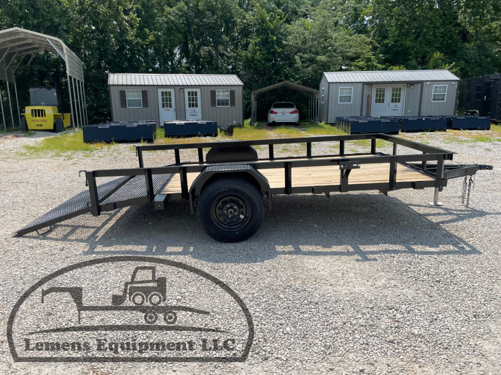 This is a single axle heavy duty bumper pull utility trailer in black color. It is 12ft long and 76 inches wide between the fenders, has a 2ft dovetail for easier loading, and has a spring assisted 3ft gate on the back. It would work good to haul a tractor, scissor lift, atv, four wheeler, utv, side by side, sxs, lawn mower, zero turn, motorcycle, dirt bike or trike. It is a good deal and the price is cheap. See more details below, thanks!
