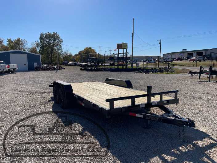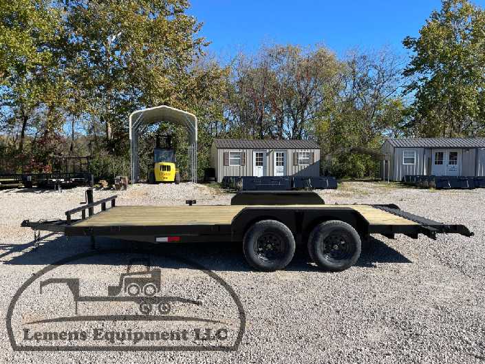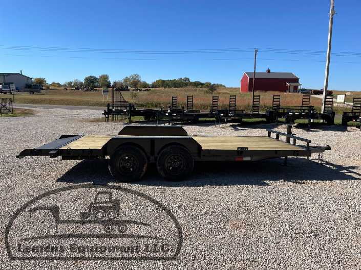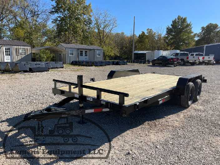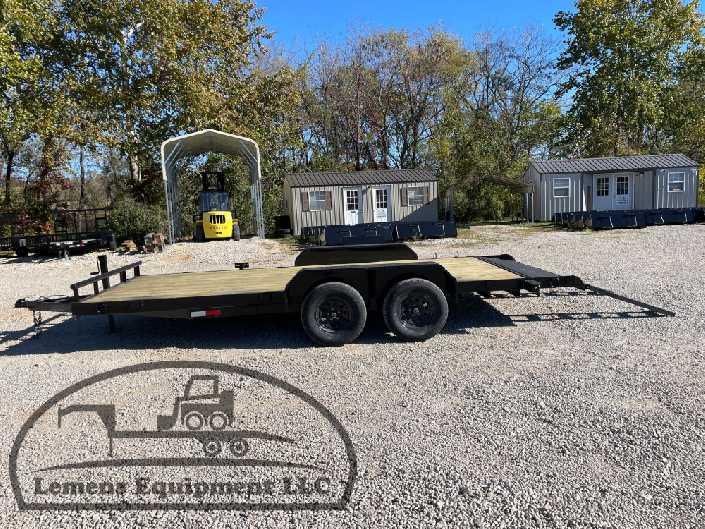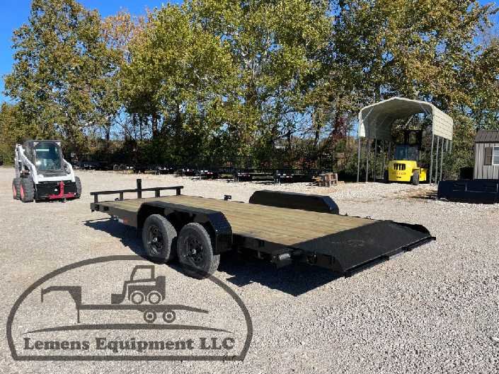 This is a tandem axle 7k heavy duty bumper pull flatbed trailer in black color. It is 18ft long and 82 inches wide between the fenders, and has slide-in ramps underneath. It would work good to haul a car, truck, skid steer, track loader, mini ex, tractor, or fork lift. It is a good deal and the price is cheap. See more details below, thanks!