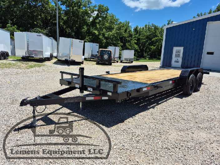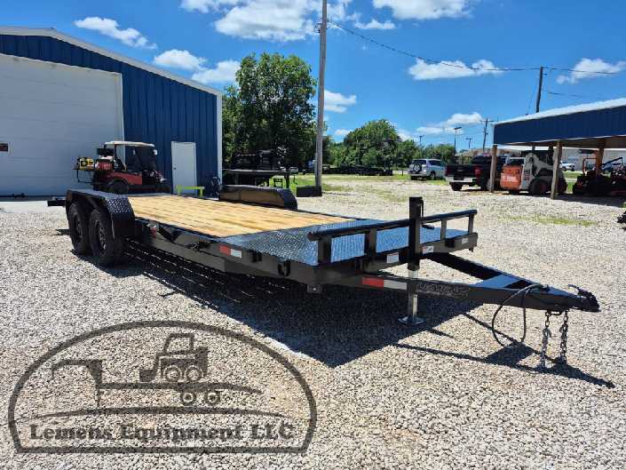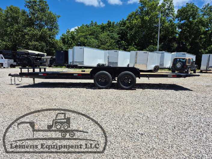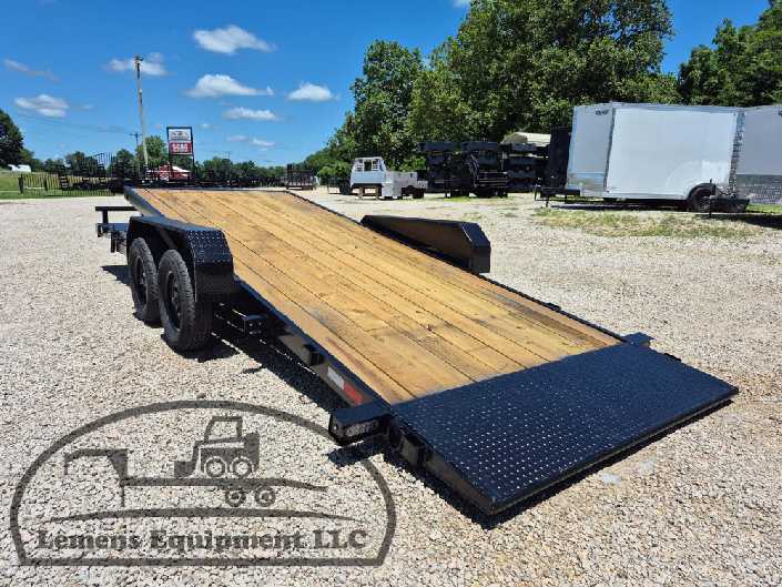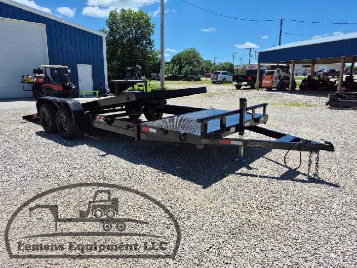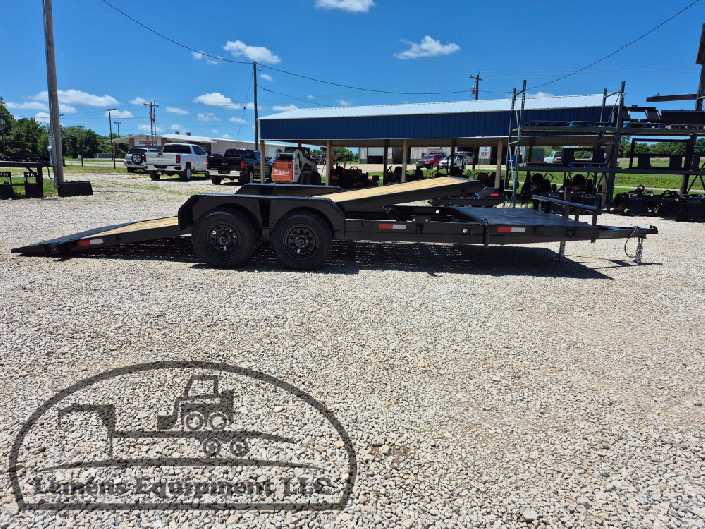 This is a tandem axle 7k bumper pull split tilt trailer in black color. It is 22ft long and it comes with a hydraulic cushion cylinder. It would work good to haul a car, truck, skid steer, track loader, mini ex, tractor, fork lift, and scissor lift. It is a good deal and the price is cheap. See more details below, thanks!