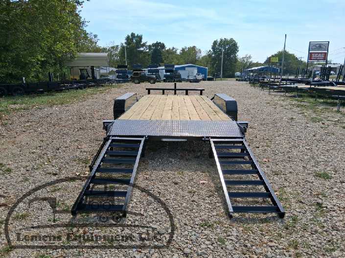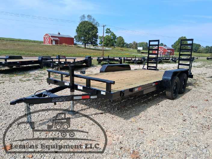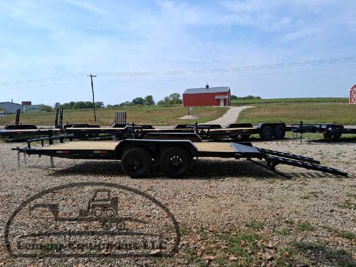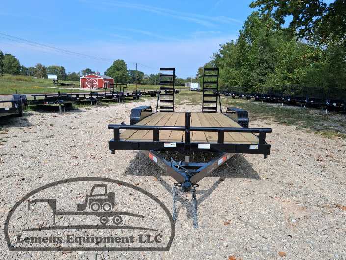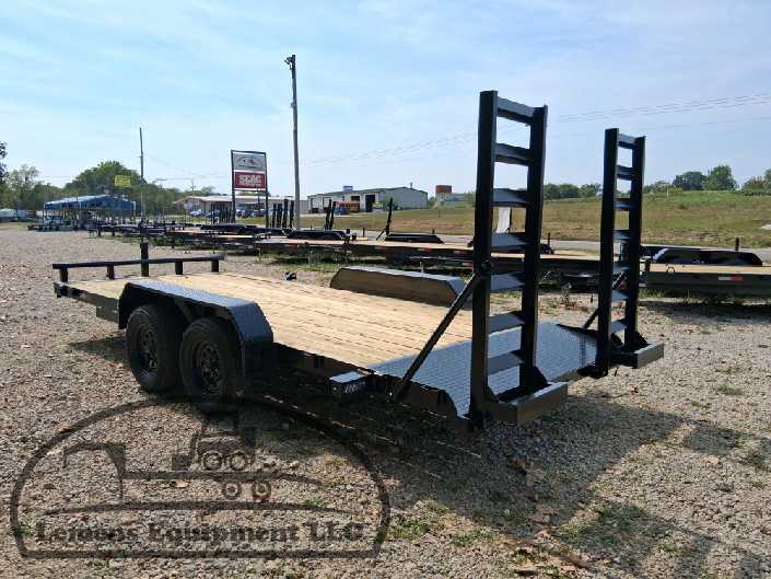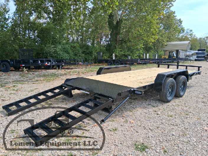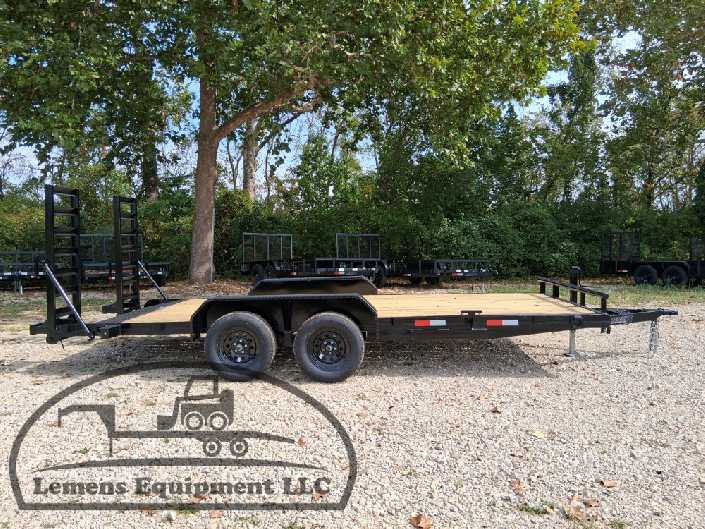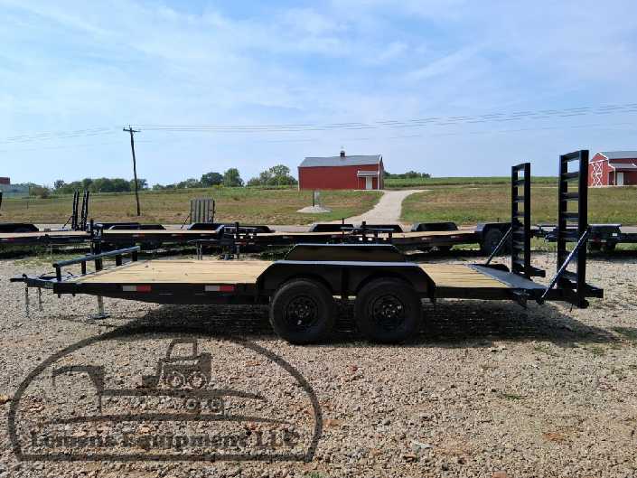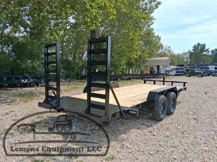 This is a tandem axle 7k heavy duty bumper pull flatbed trailer in black color. It is 18ft long and 82 inches wide between the fenders, and has spring assisted 20 inch wide fold up ramps on the back. It would work good to haul a car, truck, skid steer, track loader, mini ex, tractor, or fork lift. It is a good deal and the price is cheap. See more details below, thanks!