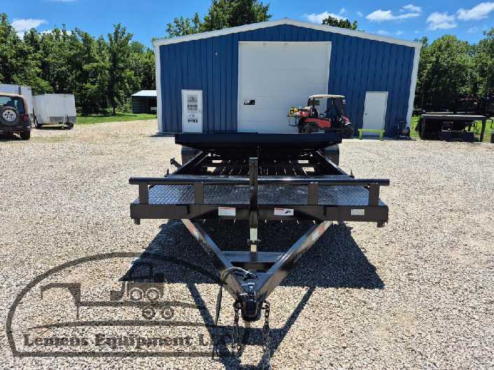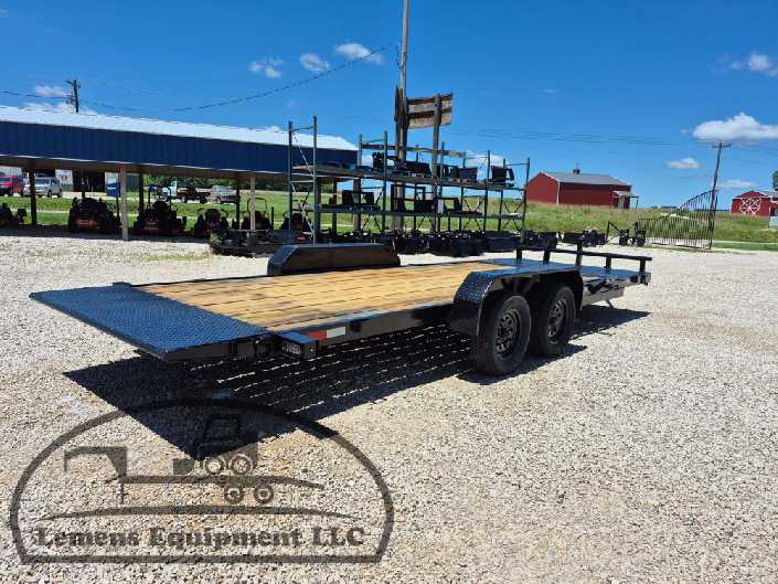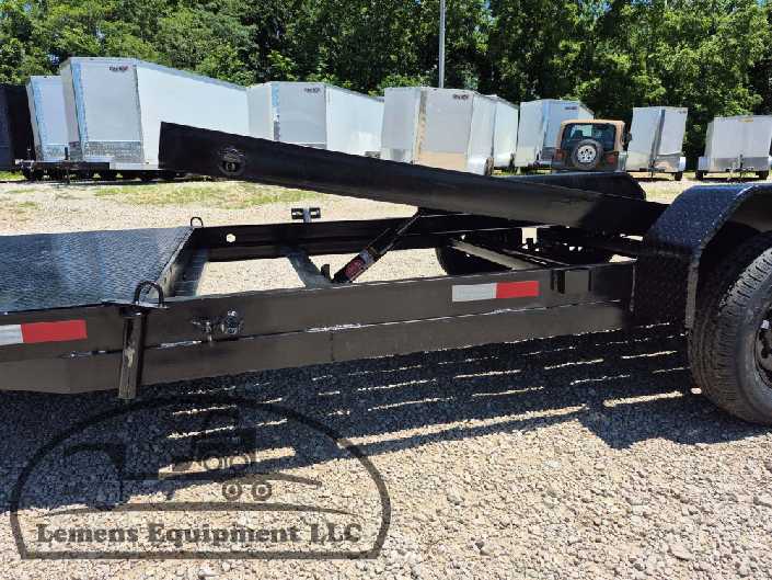 This is a tandem axle 7k bumper pull split tilt trailer in black color. It is 22ft long and it comes with a hydraulic cushion cylinder. It would work good to haul a car, truck, skid steer, track loader, mini ex, tractor, fork lift, and scissor lift. It is a good deal and the price is cheap. See more details below, thanks!