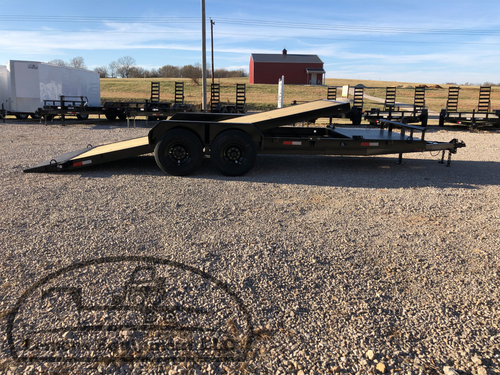 This is a tandem axle 12k heavy duty bumper pull split tilt trailer in black color. It is 22ft long and it would work good to haul a car, truck, skid steer, track loader, mini ex, tractor, fork lift, and scissor lift. It is a good deal and the price is cheap. See more details below, thanks!