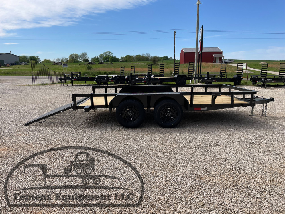 This is a tandem axle heavy duty bumper pull utility trailer in black color. It is 14ft long and 82 inches wide between the fenders, and has a spring assisted 4ft gate on the back. It would work good to haul a tractor, scissor lift, atv, four wheeler, utv, side by side, sxs, lawn mower, zero turn, motorcycle, dirt bike or trike. It is a good deal and the price is cheap. See more details below, thanks!