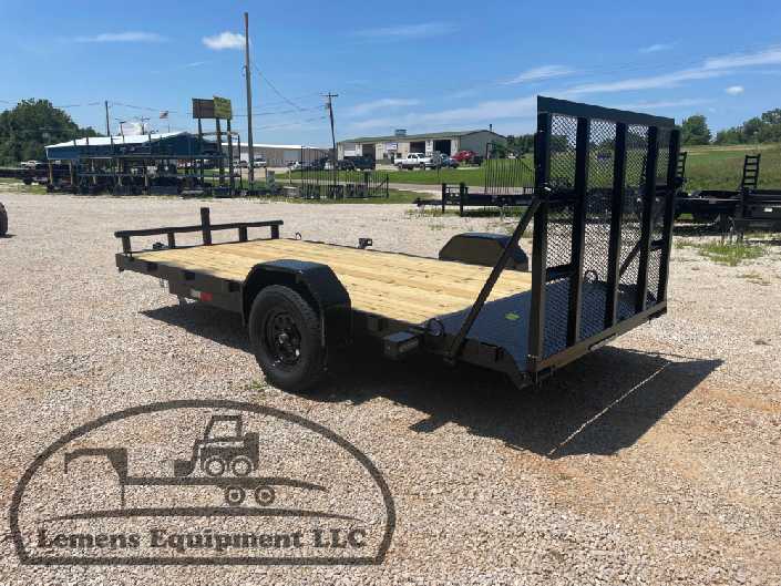 This is a single axle heavy duty bumper pull flatbed trailer in black color. It is 14ft long and 76 inches wide between the fenders, and has a spring assisted 4ft gate on the back. It would work good to haul a scissor lift, atv, four wheeler, utv, side by side, sxs, lawn mower, zero turn, motorcycle, dirt bike or trike. It is a good deal and the price is cheap. See more details below, thanks!