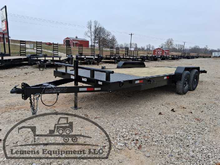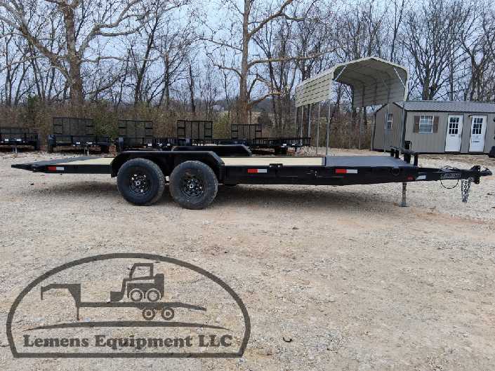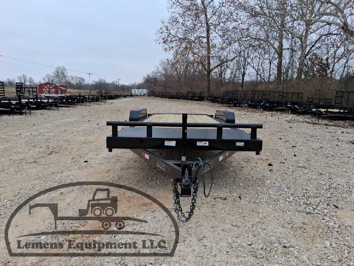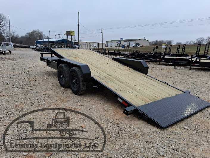 This is a tandem axle 12k heavy duty bumper pull split tilt trailer in black color. It is 22ft long and it comes with a hydraulic cushion cylinder. It would work good to haul a car, truck, skid steer, track loader, mini ex, tractor, fork lift, and scissor lift. It is a good deal and the price is cheap. See more details below, thanks!