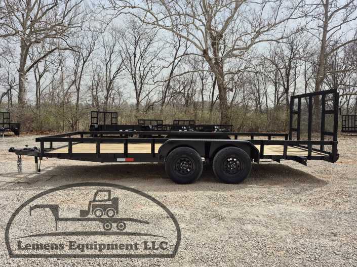 This is a tandem axle heavy duty bumper pull utility trailer with a brake in black color. It is 18ft long and 76 inches wide between the fenders, and has a spring assisted 4ft gate on the back. It would work good to haul a tractor, scissor lift, atv, four wheeler, utv, side by side, sxs, lawn mower, zero turn, motorcycle, dirt bike or trike. It is a good deal and the price is cheap. See more details below, thanks!