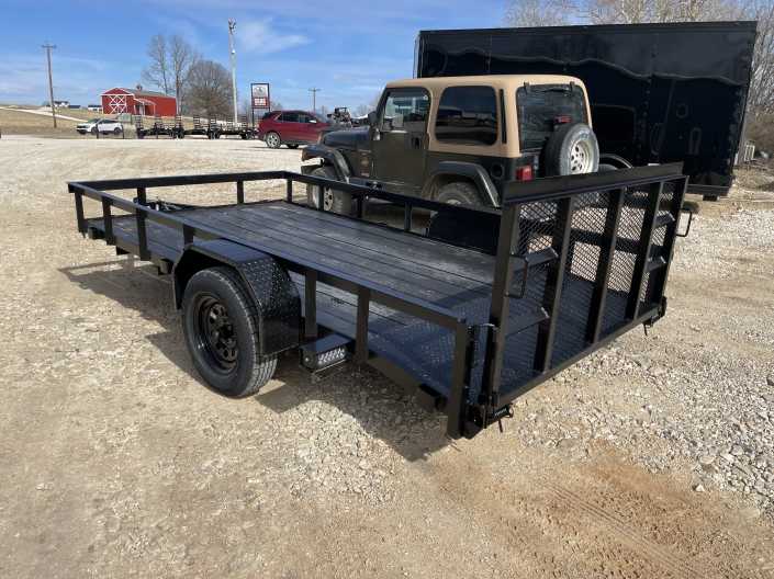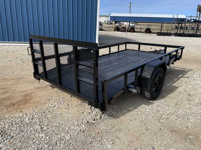 This is a single axle heavy duty bumper pull utility trailer in black color. It is 12ft long and 76 inches wide between the fenders, has a 2ft dovetail for easier loading, and has a spring assisted 3ft gate on the back. It would work good to haul a tractor, scissor lift, atv, four wheeler, utv, side by side, sxs, lawn mower, zero turn, motorcycle, dirt bike or trike. It is a good deal and the price is cheap. See more details below, thanks!