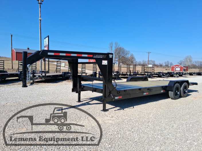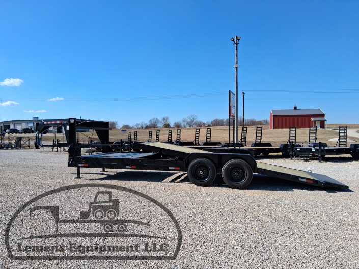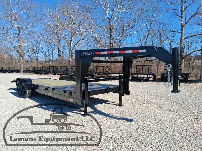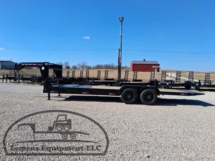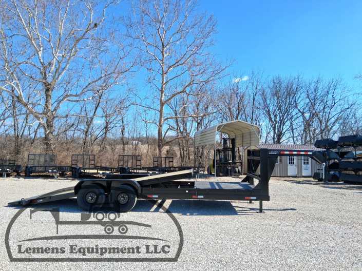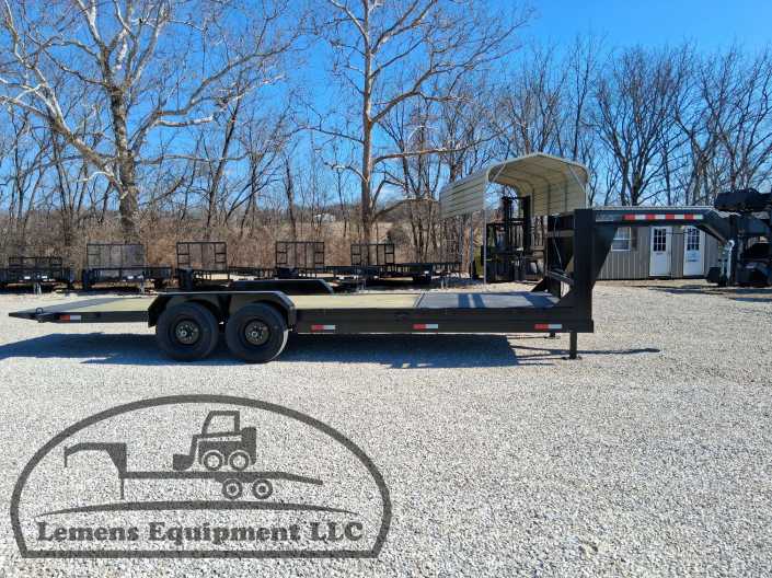 This is a tandem axle 16k heavy duty gooseneck split tilt trailer in black color. It is 24ft long and 84” extra wide between the fenders, and it comes with a hydraulic cushion cylinder. It would work good to haul a car, truck, skid steer, track loader, mini ex, tractor, fork lift, and scissor lift. It is a good deal and the price is cheap. See more details below, thanks!