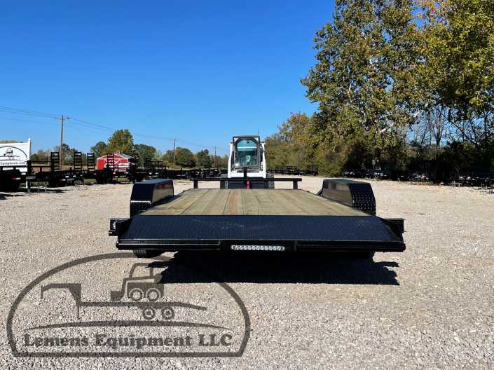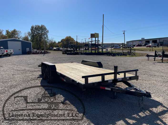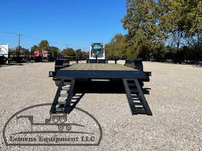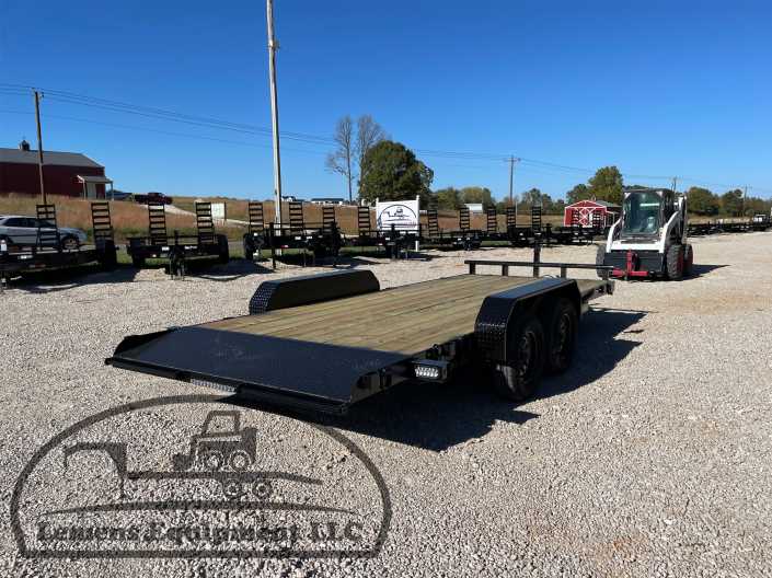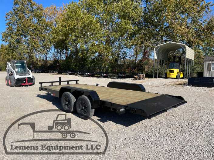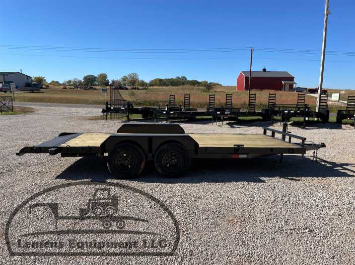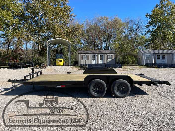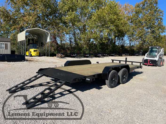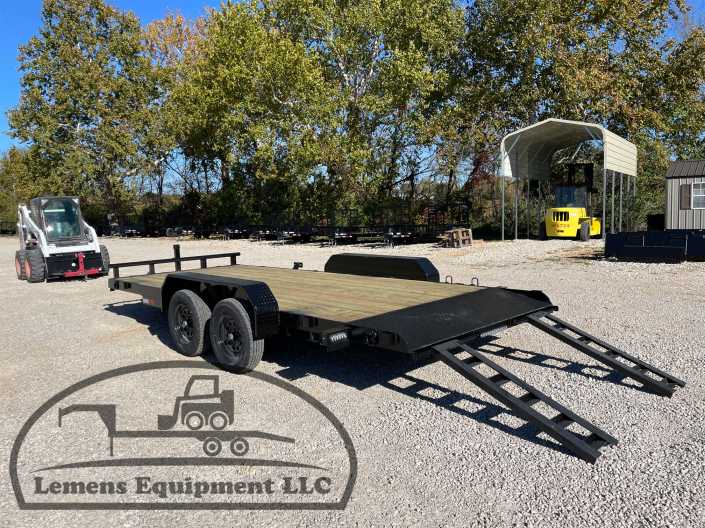 This is a tandem axle 7k heavy duty bumper pull flatbed trailer in black color. It is 18ft long and 82 inches wide between the fenders, and has slide-in ramps underneath. It would work good to haul a car, truck, skid steer, track loader, mini ex, tractor, or fork lift. It is a good deal and the price is cheap. See more details below, thanks!