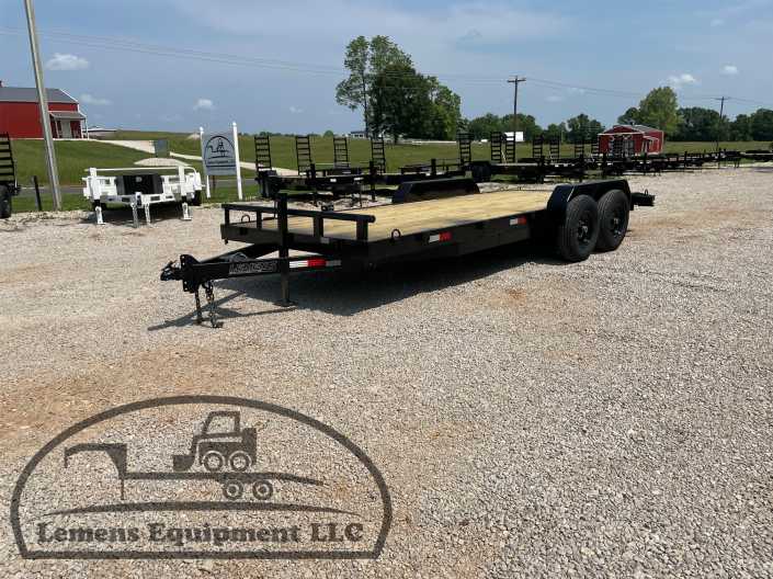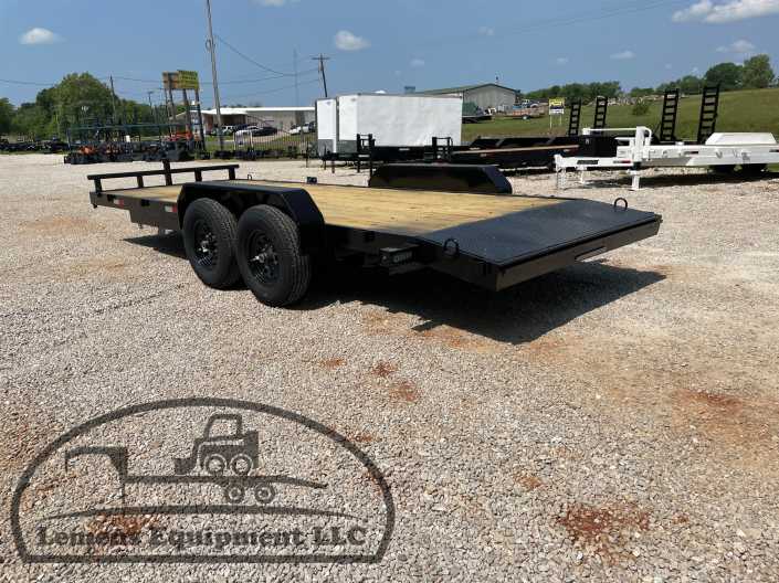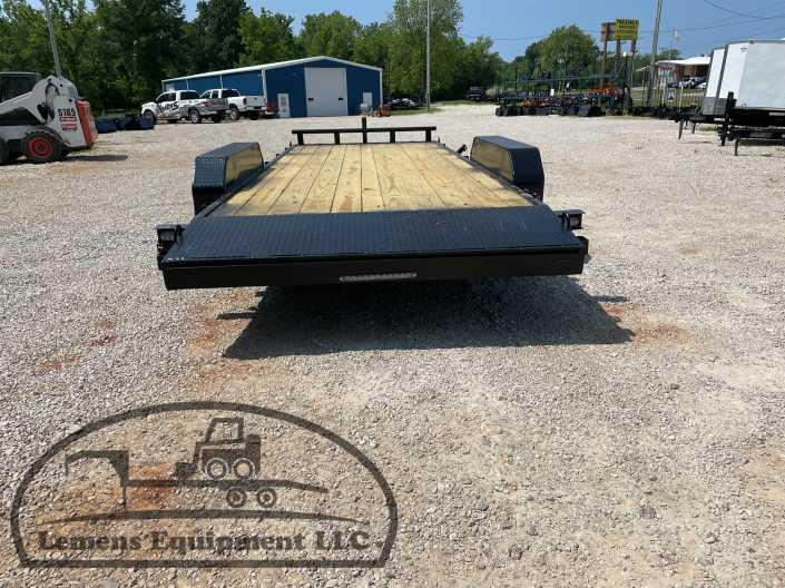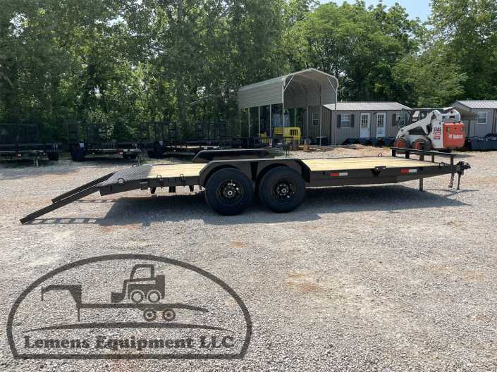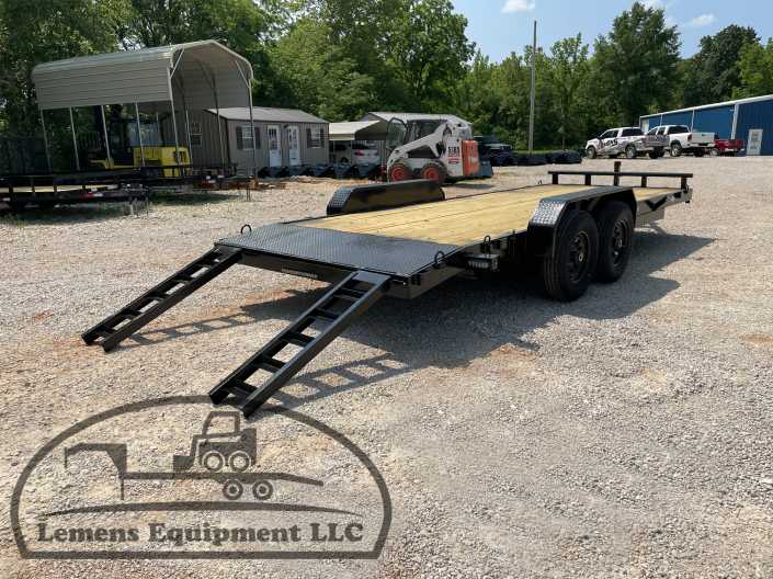 This is a tandem axle 12k heavy duty bumper pull flatbed trailer in black color. It is 20ft long and 82 inches wide between the fenders, and has slide-in ramps underneath. It would work good to haul a car, truck, skid steer, track loader, mini ex, tractor, or fork lift. It is a good deal and the price is cheap. See more details below, thanks!