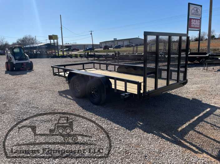 This is a tandem axle heavy duty bumper pull utility trailer with a brake in black color. It is 14ft long and 76 inches wide between the fenders, and has a spring assisted 4ft gate on the back. It would work good to haul a tractor, scissor lift, atv, four wheeler, utv, side by side, sxs, lawn mower, zero turn, motorcycle, dirt bike or trike. It is a good deal and the price is cheap. See more details below, thanks!