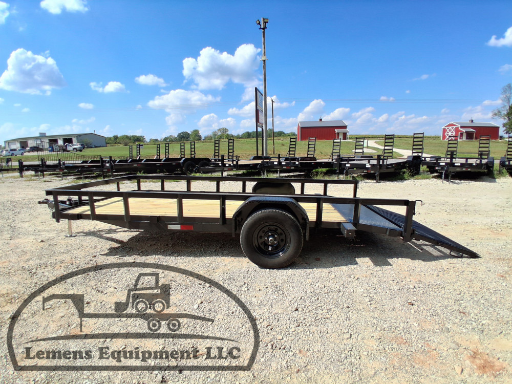 This is a single axle heavy duty bumper pull utility trailer in black color. It is 14ft long and 76 inches wide between the fenders, has a 2ft dovetail for easier loading, and has a spring assisted 3ft gate on the back. It would work good to haul a tractor, scissor lift, atv, four wheeler, utv, side by side, sxs, lawn mower, zero turn, motorcycle, dirt bike or trike. It is a good deal and the price is cheap. See more details below, thanks!