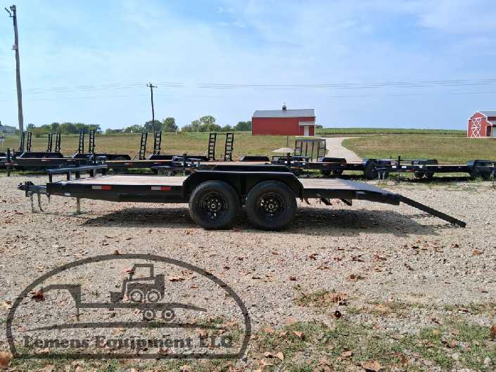 This is a tandem axle 12k heavy duty bumper pull flatbed trailer in black color. It is 18ft long and 82 inches wide between the fenders, and has slide-in ramps underneath. It would work good to haul a car, truck, skid steer, track loader, mini ex, tractor, or fork lift. It is a good deal and the price is cheap. See more details below, thanks!