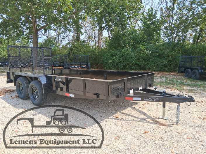 This is a tandem axle heavy duty bumper pull utility trailer with a brake in black color. It is 16ft long and 76 inches wide between the fenders, has solid sides for hauling mulch or gravel, and has a spring assisted 4ft gate on the back. It would work good to haul a tractor, scissor lift, atv, four wheeler, utv, side by side, sxs, lawn mower, zero turn, motorcycle, dirt bike or trike. It is a good deal and the price is cheap. See more details below, thanks!