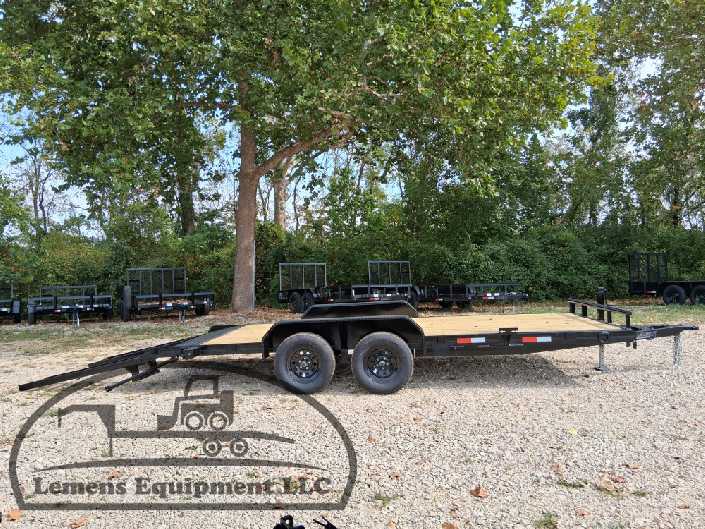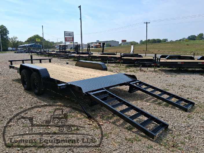 This is a tandem axle 7k heavy duty bumper pull flatbed trailer in black color. It is 18ft long and 82 inches wide between the fenders, and has spring assisted 20 inch wide fold up ramps on the back. It would work good to haul a car, truck, skid steer, track loader, mini ex, tractor, or fork lift. It is a good deal and the price is cheap. See more details below, thanks!