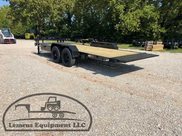 This is a tandem axle 16k heavy duty bumper pull split tilt trailer in black color. It is 22ft long and 84” extra wide between the fenders, and it would work good to haul a car, truck, skid steer, track loader, mini ex, tractor, fork lift, and scissor lift. It is a good deal and the price is cheap. See more details below, thanks!