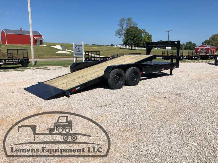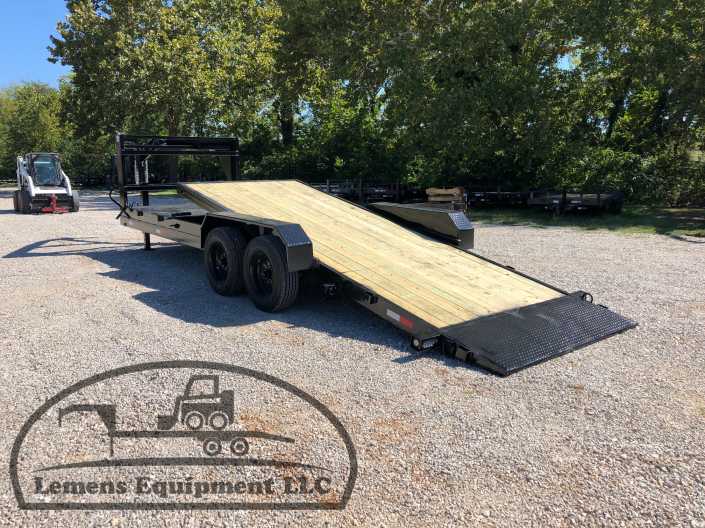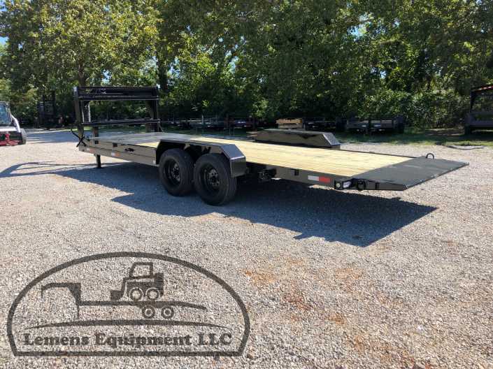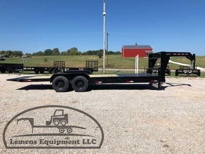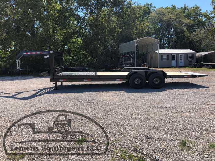 This is a tandem axle 16k heavy duty gooseneck split tilt trailer in black color. It is 24ft long and 84” extra wide between the fenders, and it comes with a hydraulic cushion cylinder. It would work good to haul a car, truck, skid steer, track loader, mini ex, tractor, fork lift, and scissor lift. It is a good deal and the price is cheap. See more details below, thanks!