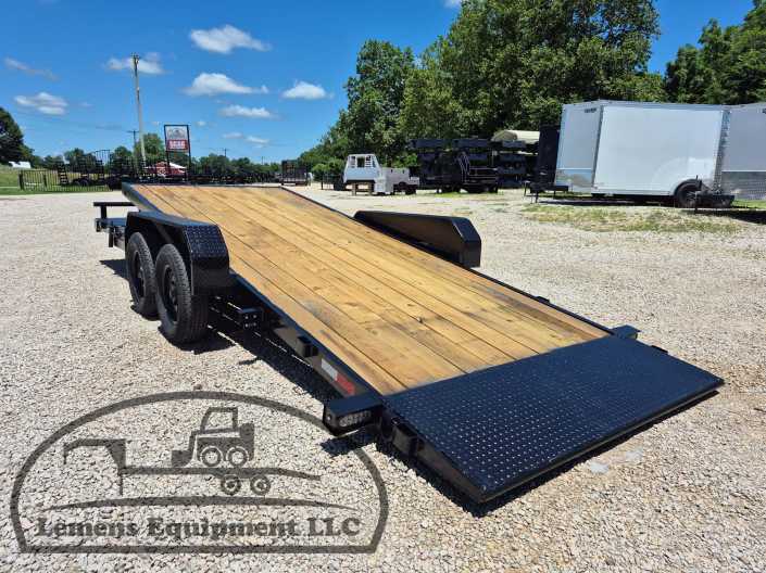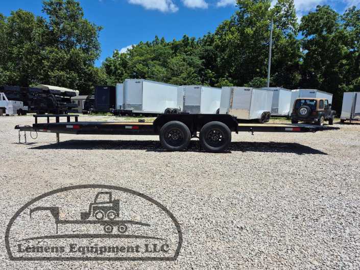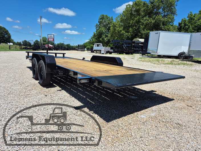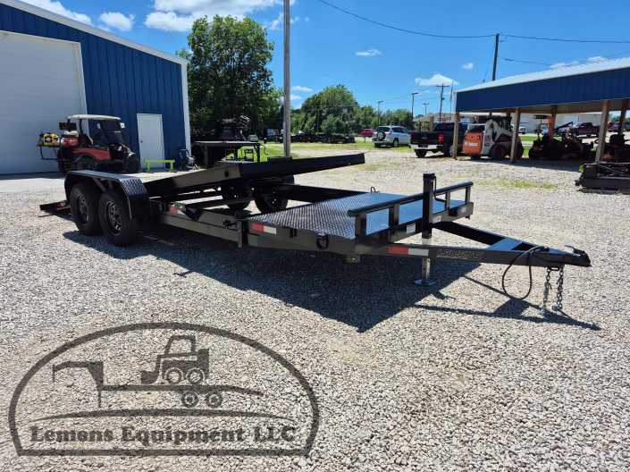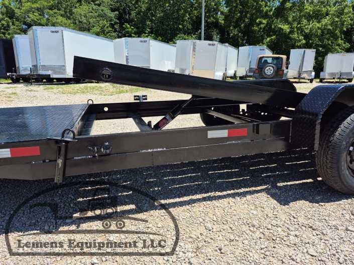 This is a tandem axle 7k bumper pull split tilt trailer in black color. It is 22ft long and it comes with a hydraulic cushion cylinder. It would work good to haul a car, truck, skid steer, track loader, mini ex, tractor, fork lift, and scissor lift. It is a good deal and the price is cheap. See more details below, thanks!